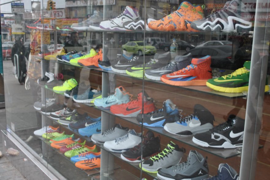 Окрема категорія — кросівки. На Фордгемі їх просто величезний вибір: від стилізованих хіп-хоп моделей до стриманих універсальних кросівок, в яких більшість тут ходить на роботу. А ось, наприклад, таке спортивне взуття, як Jordan, стало символом статусу серед молоді, особливо в бідних районах. Такі кросівки не лише виконують функцію взуття, а й слугують інвестицією в імідж та самовираження. Адже існують негласні паралелі, які затвердилися у світі моди щодо певних брендів. Наприклад, Converse асоціюється з представниками культури емо, пара Vans робить вас скейтбордистом, а пара Jordan’s або Nike забезпечує вам крутий імідж серед натовпу хіп-хоперів.